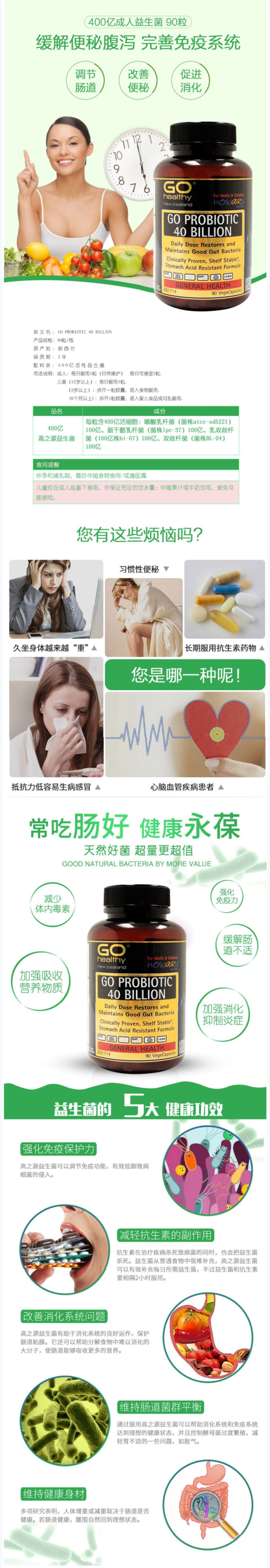 GO Healthy 高之源 400亿 益生菌 90粒-保质期-2027.10
