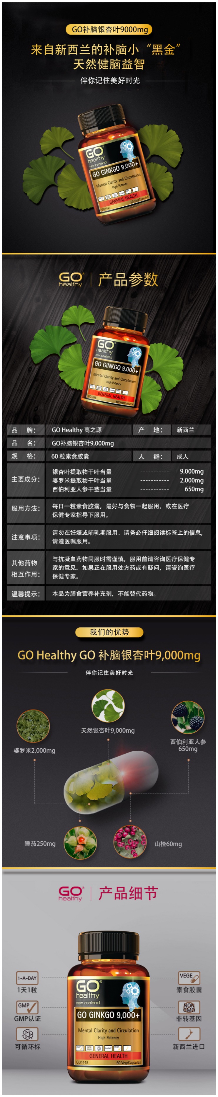GO Healthy 高之源 银杏精华 9000mg 含量60粒【2028.07】