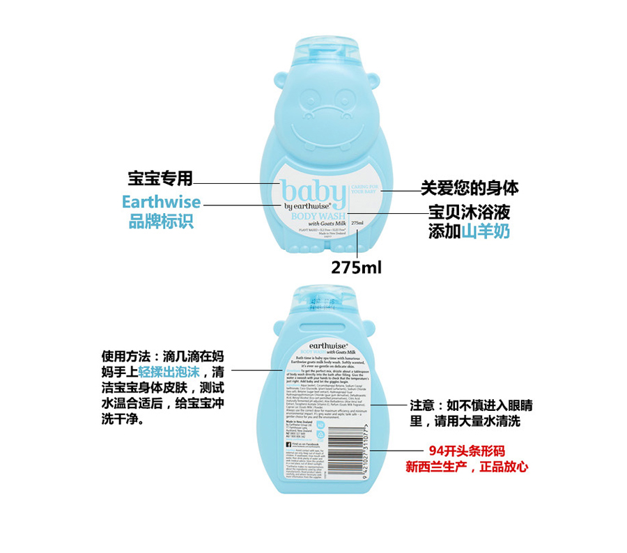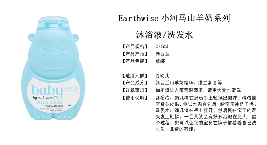 Earthwise 河马宝宝 黄瓶 婴儿羊奶洗发水 275ML 2025.02