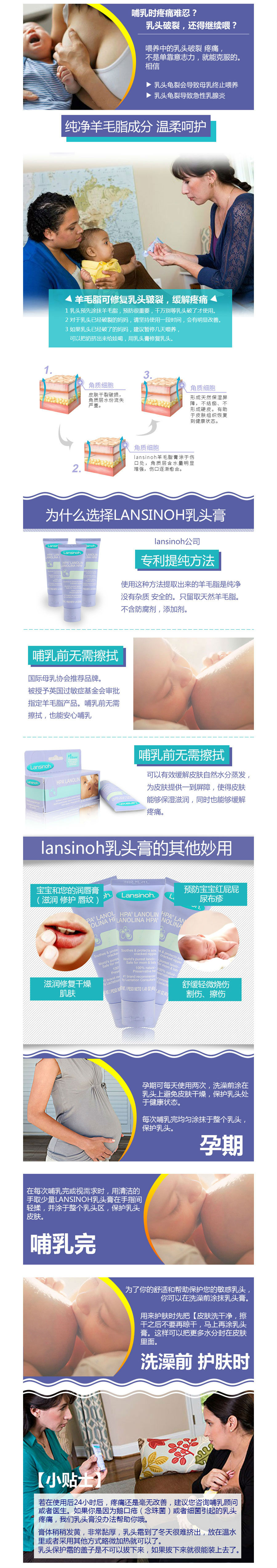 Lansinoh 羊毛脂乳头保护霜 宝宝可食用 15g