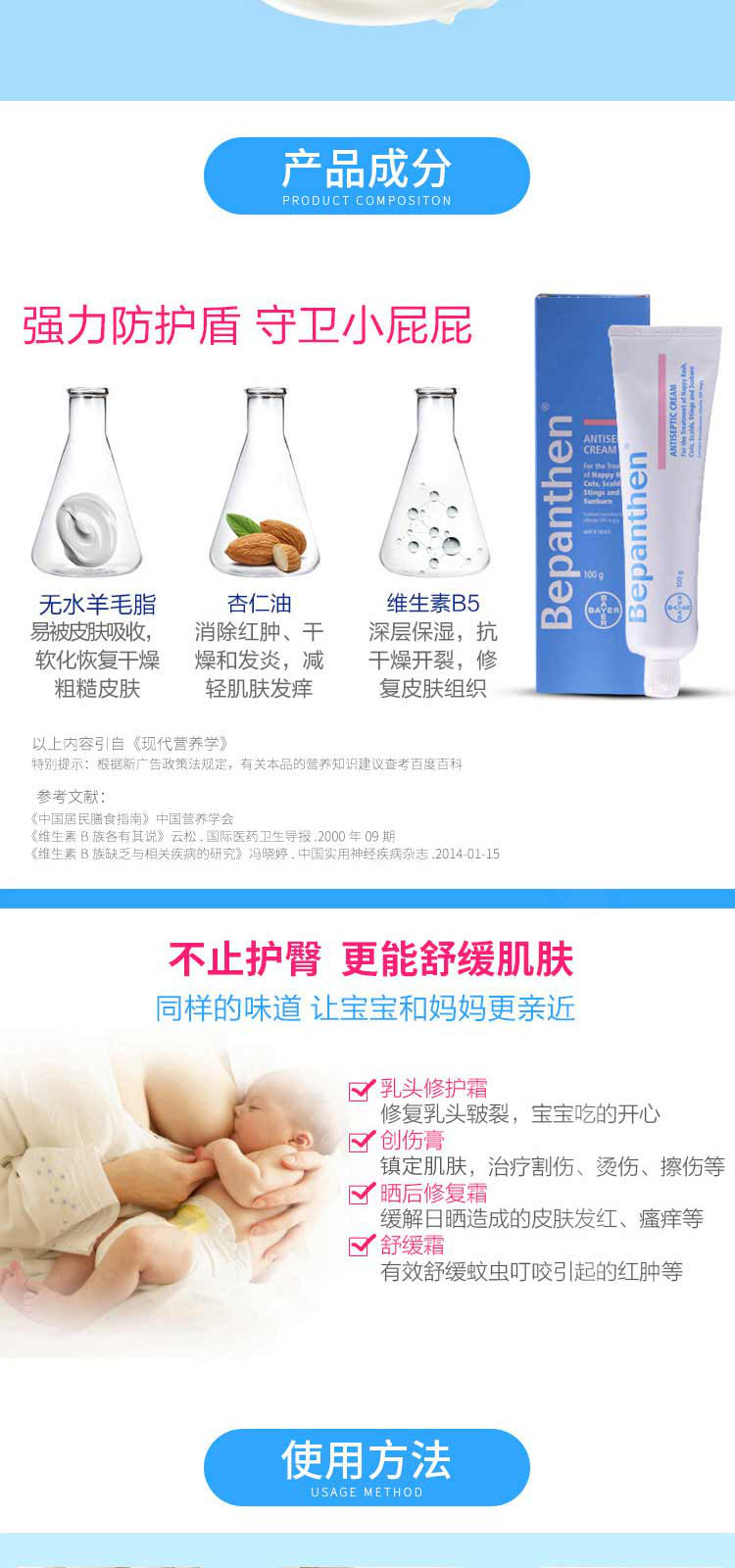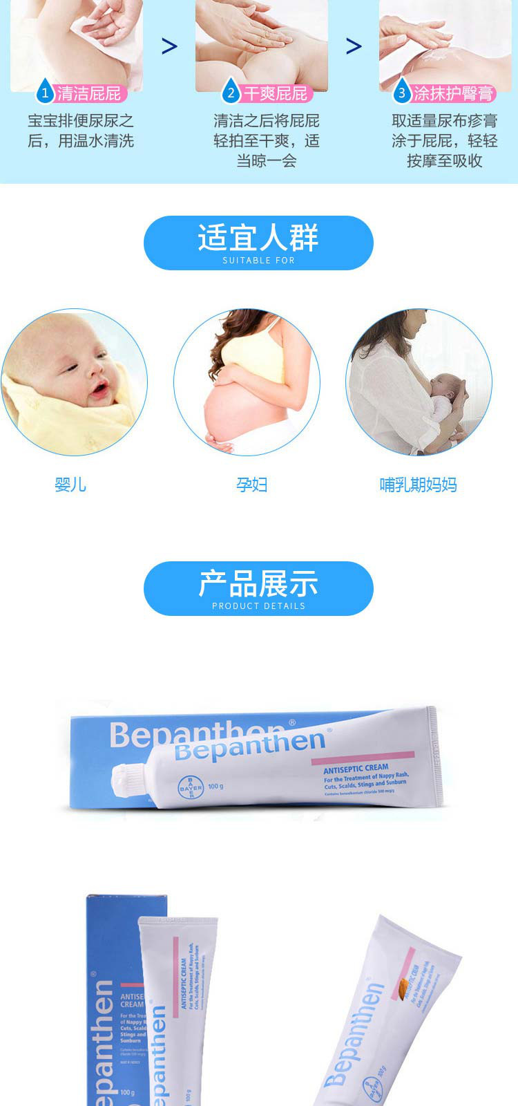 Bayer Bepanthen(蓝盒)拜耳抗菌护臀膏 100g-日期-2026.12