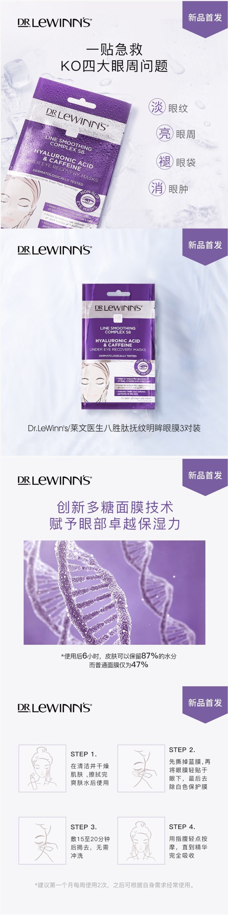 Dr.Lewinn's莱文医生四重密集360度胶原蛋白眼膜*3副