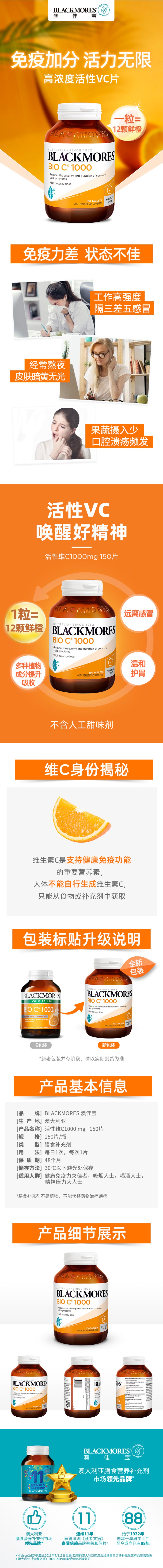 Blackmores 澳佳宝 天然活性维生素C 1000mg 150片【2027.07】