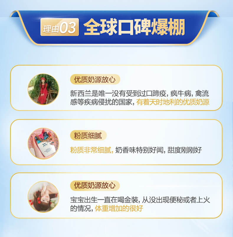奶粉不含蔗糖,含有比普通牛奶多十倍以上的铁质,并含有丰富维他命C,帮助吸收铁质,同时提供宝宝成长所需的钙质及蛋白质;含有菊粉,帮助肠道有益菌生长,抑制有害细菌,所以对感染导致的腹泻有预防作用。此外还特别添加了母乳中的自然成分LCP Omega 6、Omega 3和DHA; DHA对宝宝的脑、眼睛及神经发育都非常重要。一杯成长奶粉含有25-50%每天所需吸收的16种矿物质及维生素。独有增强免疫配方,全面提升宝宝的抵抗能力!而且奶粉里面没有添加香料,不会造成宝宝口味的依赖!