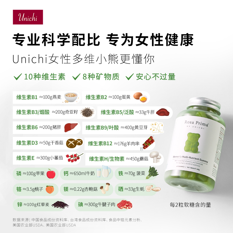 Unichi 玫瑰海洋胶原蛋白小熊软糖 60粒-保质期-2027.12