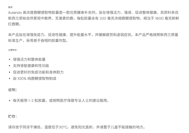 > Aulando 欧兰多超高含量鹿鞭1600精华丸 90粒