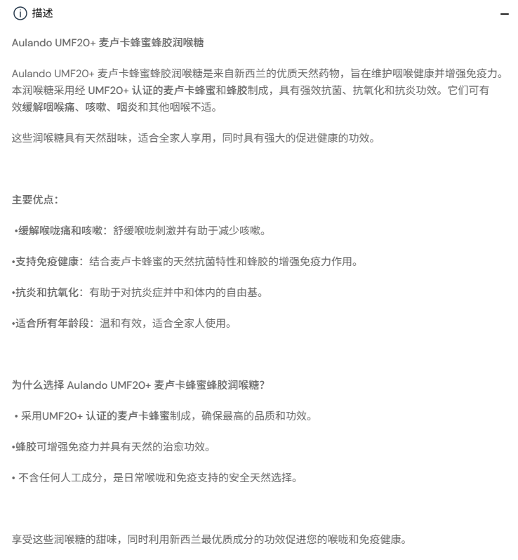 > Aulando 欧兰多 UMF20+蜂胶抗炎舒缓喉糖250g